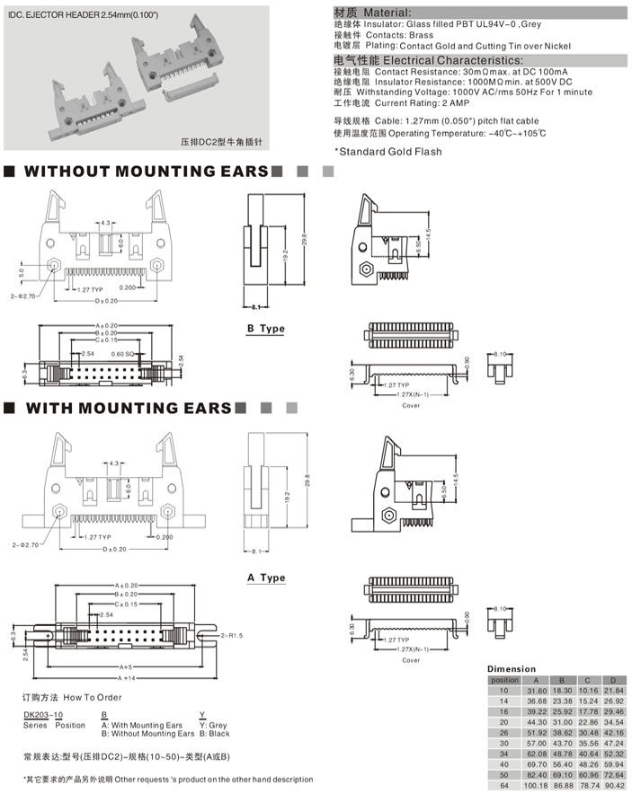 压排DC2型简牛插针IDC EJECTOR HEADER 2.54mm(0.100')