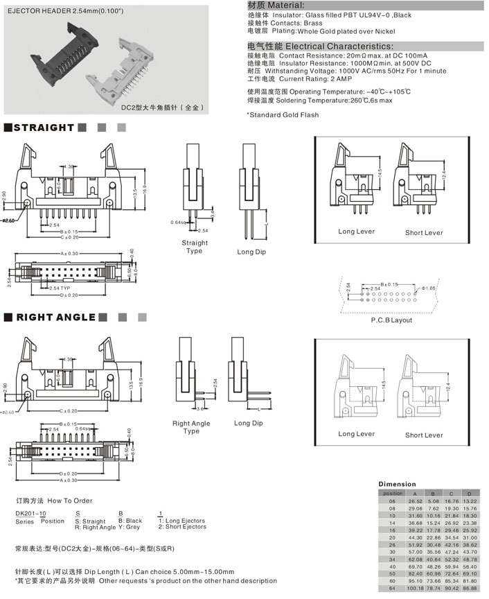 DC2型大牛角插针(全金)EJECTOR HEADER 2.54mm(0.100')
