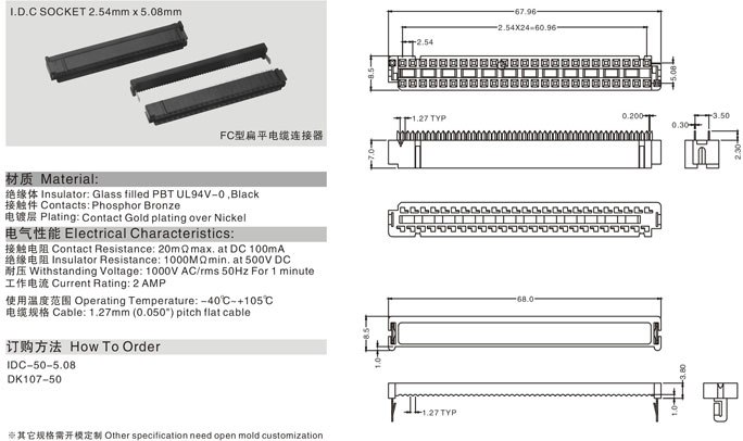 FC型扁平电缆连接器I.D.C SOCKET 1.27mm*5.08mm