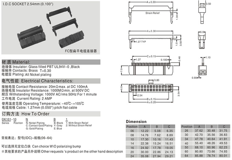 FC型扁平电缆连接器I.D.C SOCKET 2.54mm (0.100')