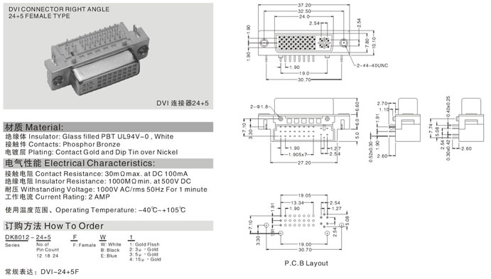 DVI 连接器24+5 DVI CONNECTOR RIGHT ANGLE24+5 FEMALE TYPE