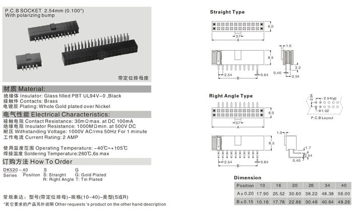 带定位排母线 P.C.B SOCKET 2.54mm(0.100")