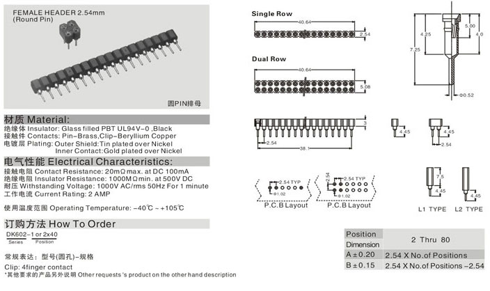 圆PIN排母FEMALE HEADER2.54mm(Round Pin)