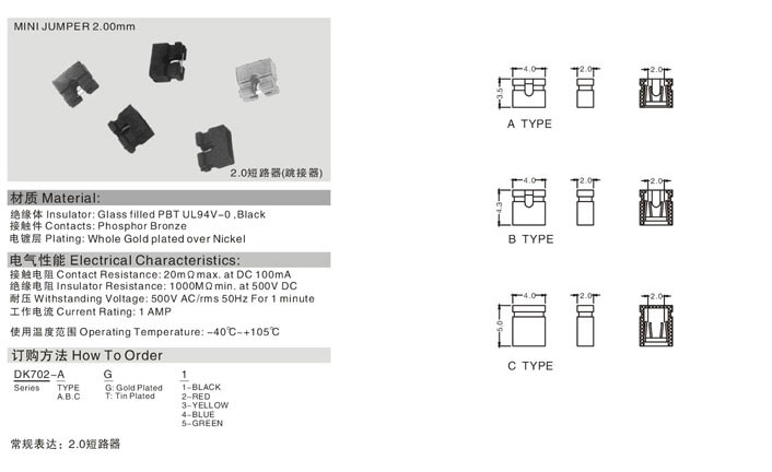 2.0短路器(跳接器) MII JUMPER 2.00mm