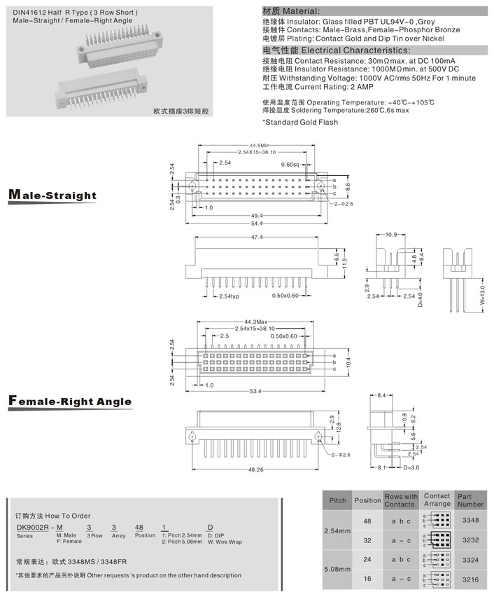 欧式插座3排短胶 (3 Rom Short)Male-Straight/ Female-Right Angle