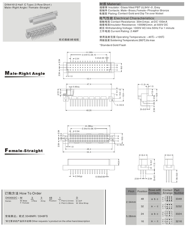 欧式插座3排短胶(3 Rom Short)Male-Straight/ Female-Right Angle