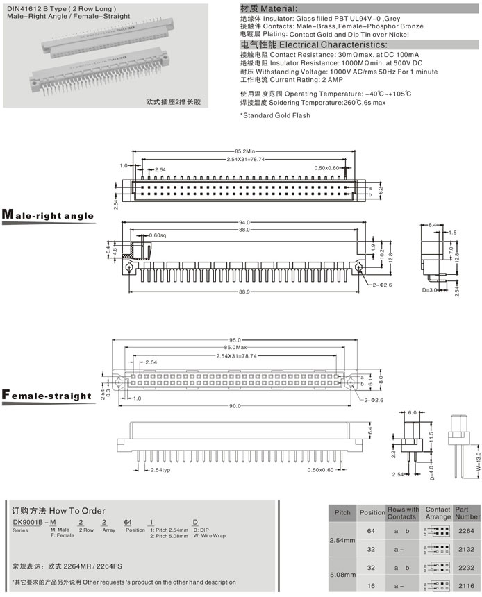 欧式插座2排长胶 DIN41612 B TYPE(2 Row Long) Male-Right Angle/Female-Stright)