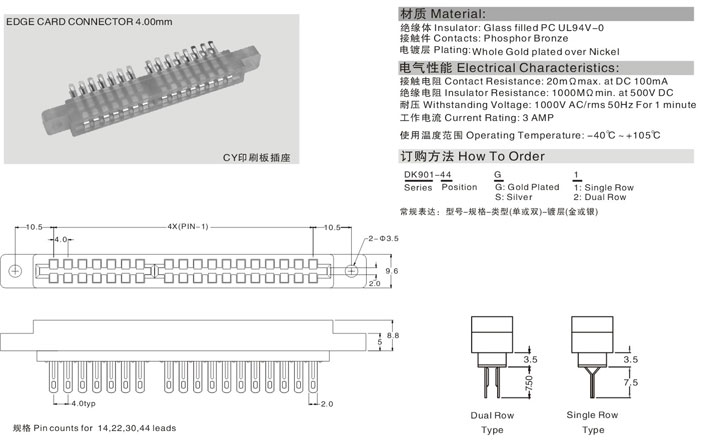 CY印刷板插座 EDGE CARD CONNECTOR 4.00mm