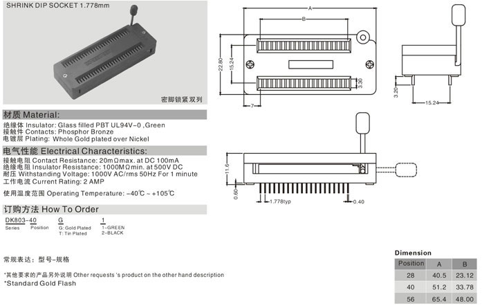 密脚锁紧双列 SHRINK DIP SOCKET 1.778mm