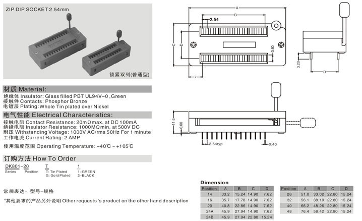 锁紧双列(普通型) ZIP DIP SOCKET2.54mm