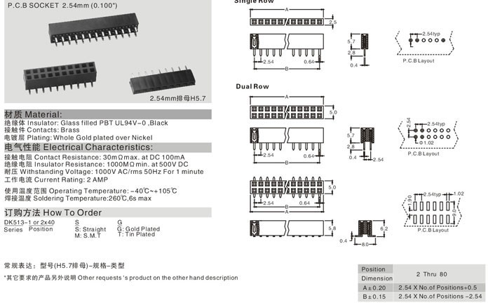2.54mm排母H5.7 P.B.C SOCKET ELEVATED 2.54mm
