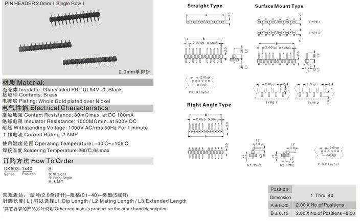 2.00单排针 PIN HEADER2.0mm(Single Row)