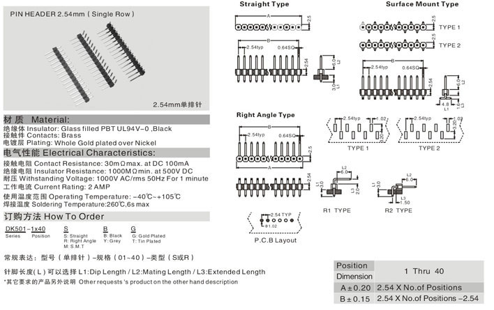 2.54mm单排针 OIN HEADER 2.54mm (Single Row)